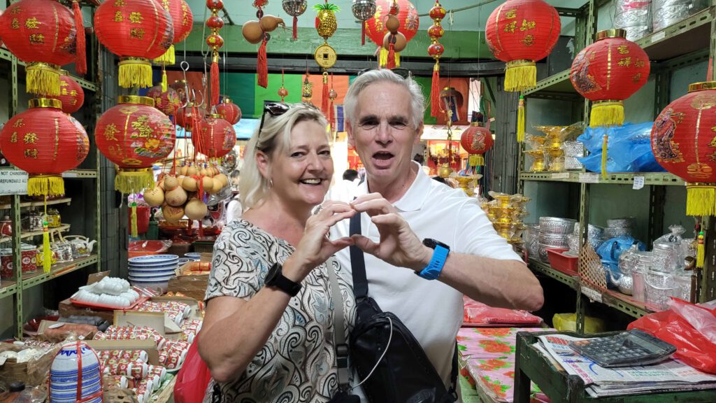 Chinatown – eine Stadt inmitten einer Stadt. Wir haben das Viertel bereits 2011 alleine und 2019 im Rahmen einer City-Tour besucht. Das Ganze ist so beeindruckend, dass man das durchaus immer wieder mal machen kann. Es ist eines der größten Chinatowns weltweit, wo es alles gibt, was der Chinese so braucht. Geschäfte, Restaurants, Tempel und Markthallen. Die Kombination aus Optik und Geruch ist oftmals grenzwertig und viel Dinge habe ich vorher so noch nicht gesehen. Wir schlendern gute 2 Stunden durch die engen Gassen und lauten Straßen, und erstehen irgendwo ein paar neue Chop Sticks. Das Verkaufsgespräch ist angenehm, wir können ein wenig feilschen und am Ende lichtet der Verkäufer seine zufriedene Klientel auch noch höchstpersönlich ab.
