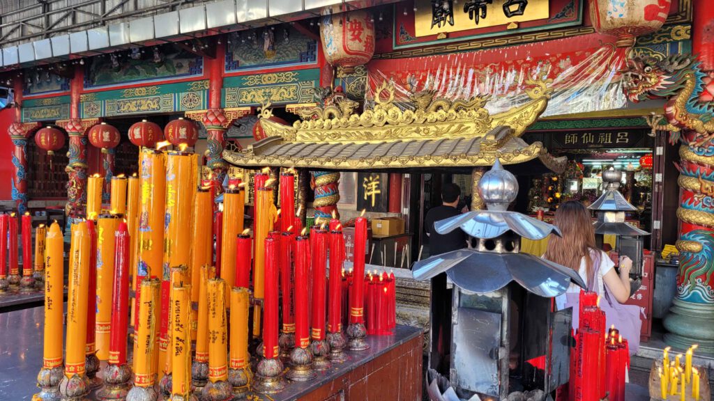 Auf dem Weg zurück zum Skytrain stoßen wir auf eine U-Bahn Station und ein kurzer Check zeigt uns, dass eine der Linien direkt im Zentrum von Chinatown hält. Coole Idee, haben wir bisher noch nicht gemacht. Es geht mehrere Etagen in die Tiefe, hier unten ist es angenehm kühl und die U-Bahn lässt nicht lange auf sich warten. Es sind nur 4 Stationen, die Bahn ist pfeilschnell und so sind wir in kürzester Zeit in Chinatown und das für ganz kleines Geld.