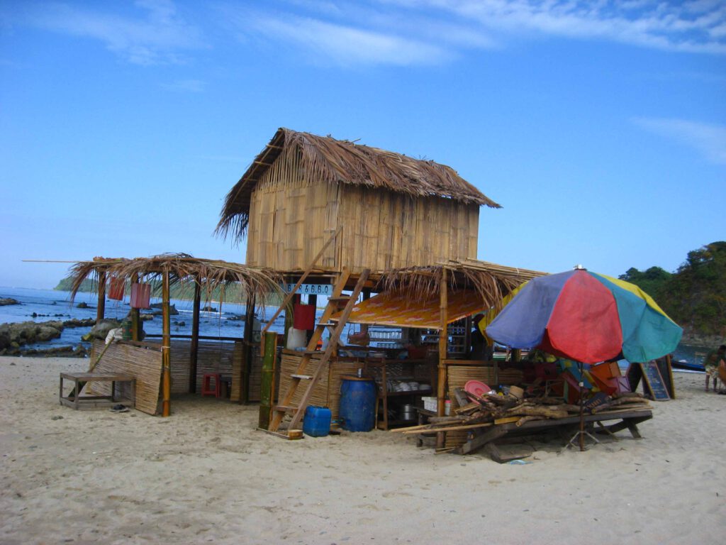 Die Chemie zwischen uns und unseren Fahrern stimmt und so entschließen wir uns spontan, aus dem gebuchten Halbtagesausflug einen Ganztagestrip zu machen. Dafür muss unser Seemann aber nochmal nachtanken. Wir verlassen White Sands und schippern ins nahegelegen Fischerdorf um zu shoppen. Zwei eineinhalb Liter-Mineralwasserflaschen mit Sprit, sowie unser Mittagessen. Auch mit verbundenen Augen hätte ich gewusst wohin die Reise geht, den schon von weitem riecht es sehr streng – um es vorsichtig auszudrücken. Am Strand türmen sich Berge von kleinen Fischen, die dort zum Trocknen ausgelegt worden sind. Aus ihnen wird später Fischpaste oder Hühnerfutter gemacht. Den restlichen Fang des Tages verwahren die Fischer in ihren Bambushütten in Wasserbehältern auf. Wir erstehen 6 Riesengarnelen – und wenn ich sage Riesengarnelen, meine ich Riesengarnelen – sowie einen Red Snapper für umgerechnet 5 Euro.