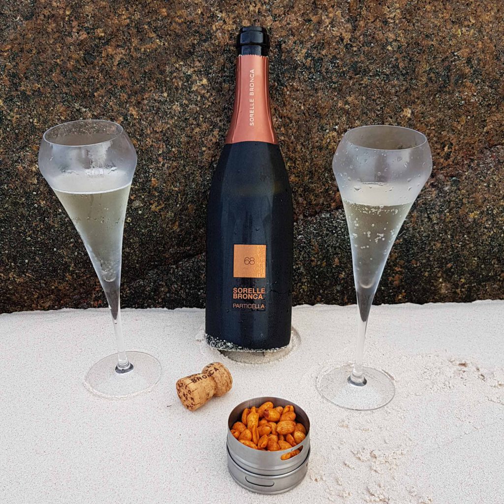 Gegen Abend entschließen wir uns, unser heimeliges Resort zu verlassen. Wir packen unsere Badetasche stilecht mit ein Paar Sektflöten aus unserem Apartment sowie einer Flasche Prosecco Sorelle Bronca Particelle 68, den wir eigens 1.000 Kilometer aus Italien nach Deutschland und letzte Woche mit dem Flieger hierher gebracht haben. Vermutlich der meistgereiste Prosecco Italiens. Seitdem lagert er kühl seiner Aufgabe entgegen. Wir wandern zum nächsten Strand wo ein paar Felsen aus dem Wasser ragen und genehmigen uns mit der untergehenden Sonne genüsslich unser Lieblingsgetränk. Kurz bevor wir zum Essen wollen, klopft der Zimmerservice an unsere Tür. Draußen steht eine dunkelhaarige Seychellois mit einem großen Sektkühler und einer Flasche Prosecco. Dazu eine Karte. Was wir zunächst als nette Geste des Hotels wähnen, entpuppt sich als Geburtstagsgeschenk von Klaus & Kay! Danke Jungs, wir lieben Leute mit Stil.  So findet der wettermäßig etwas missratene Tag dann doch noch ein einigermaßen versöhnliches Ende.