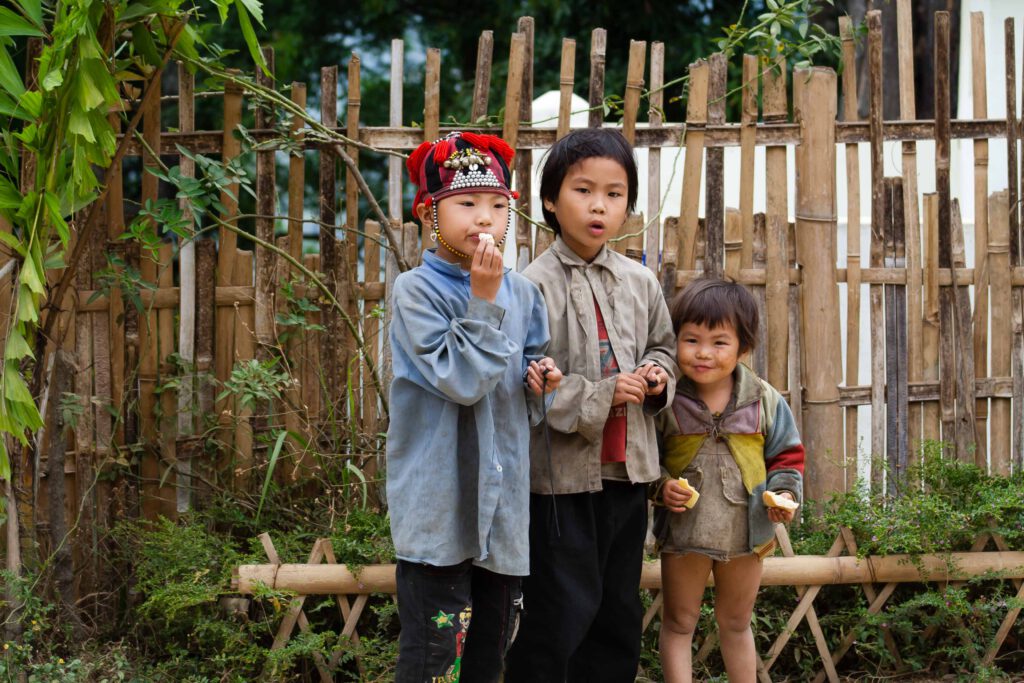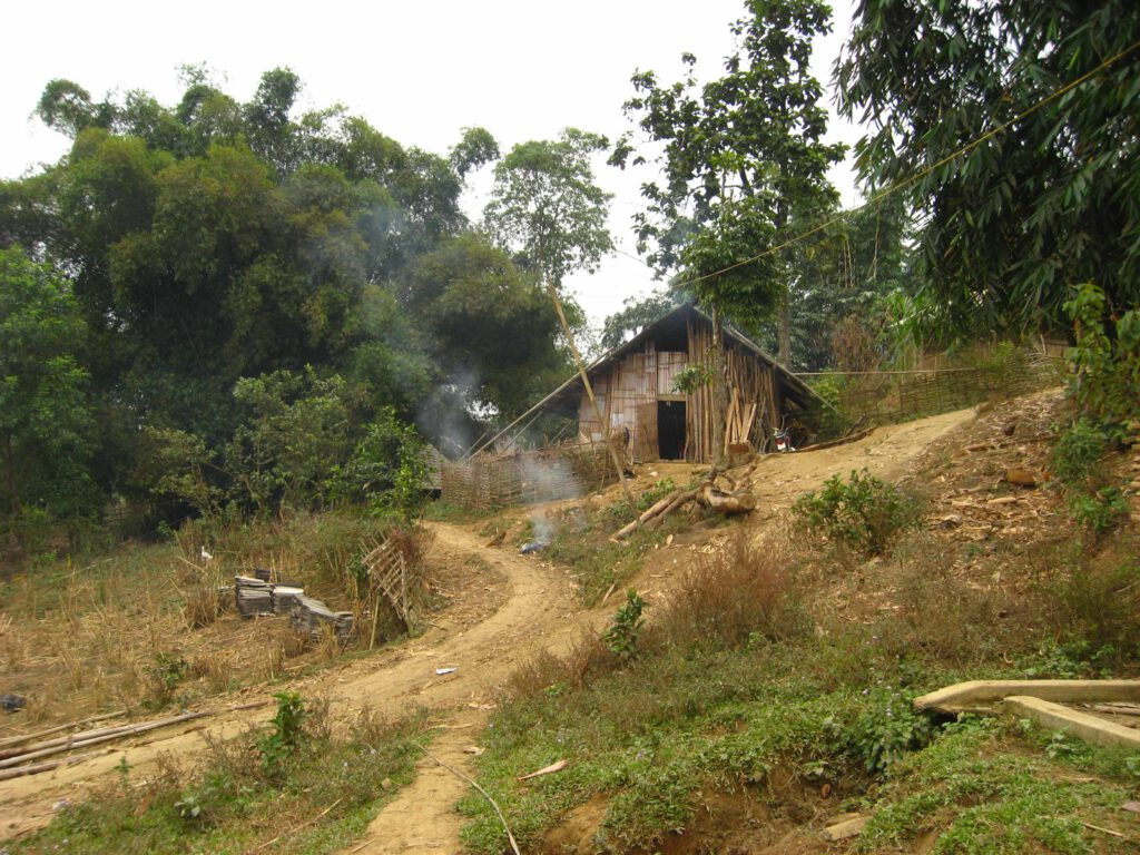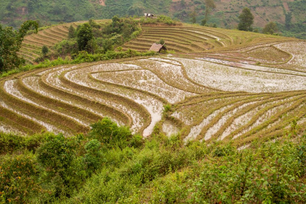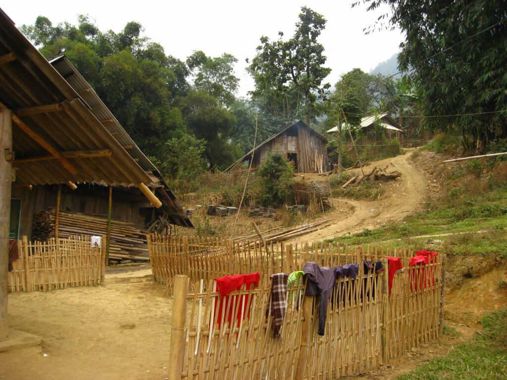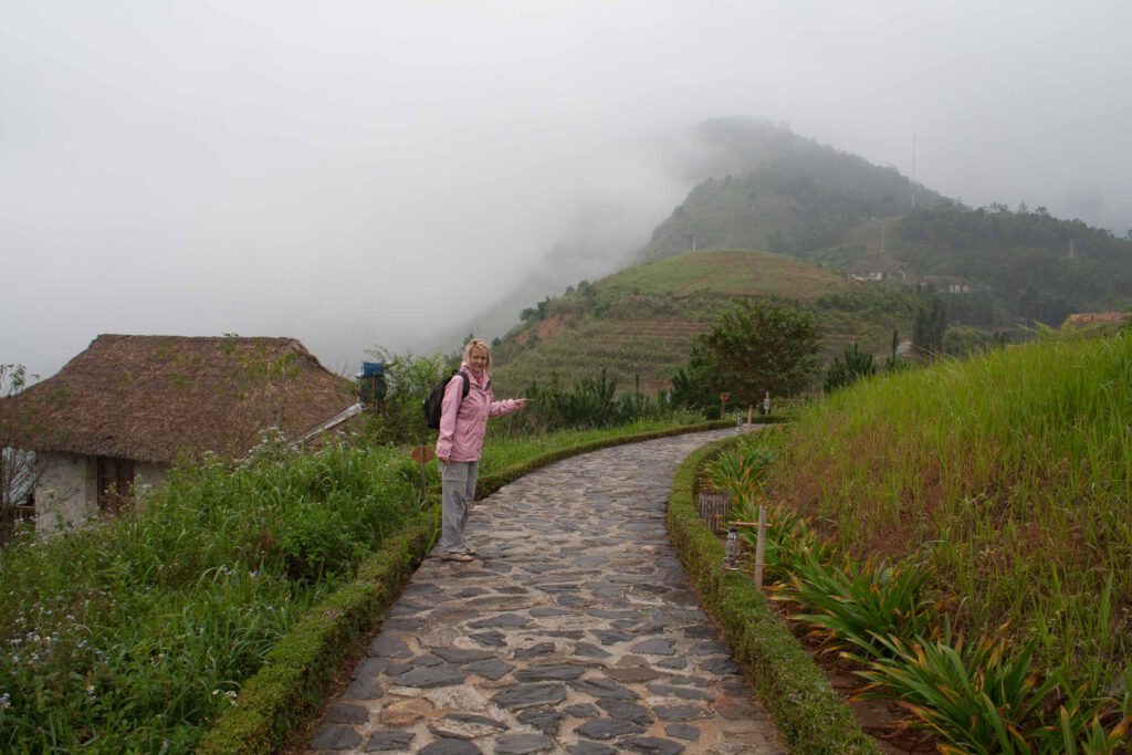 Der nächste Morgen beginnt mit Nebel. Nach dem schönen Vortag haben wir auf spektakuläre Bilder aus unserer Lodge mit einer Wolkendecke im Tal und klarer Sicht in den Bergen gehofft. Die Wolken sind auch da, nur leider überall. Die Trekkingtour mit unserem Guide beginnt daher auch bei Nieselregen und gefühlten 10°C, obwohl es wärmer ist. Die Wanderung führt uns entlang an Reisterrassen und durch zwei Dörfer ethnischer Minderheiten.