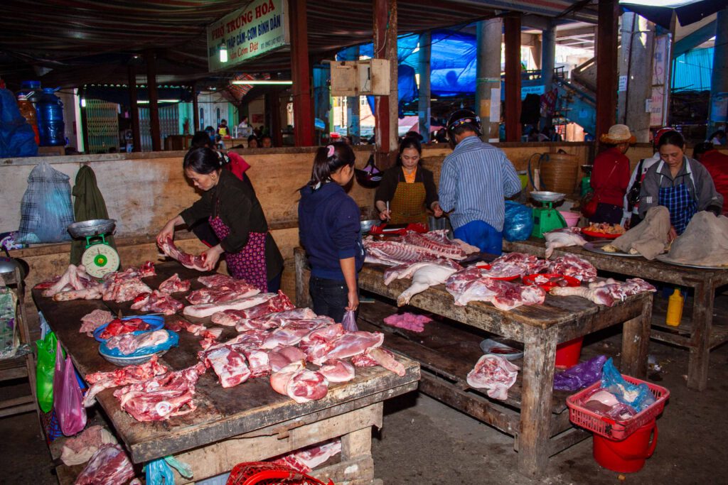 Für heute haben wir mit unserem Guide die Abholung vom Hotel in Sapa für 12:00 Uhr vereinbart. Dadurch bleibt uns genug Zeit in Ruhe zu frühstücken und uns das Städtchen und den Markt anzusehen Fast hätten wir uns trotzdem verquatscht, da wir im Hotel ein Paar aus Münster treffen, die auch mit Umfulana unterwegs sind, aber bereits andere Etappen schon gemacht haben, die wir noch vor uns haben. Letztendlich hat es aber doch noch gereicht, da Sapa schnell erkundet ist. Der Ort lebt eindeutig vom Tourismus und hat sich in den letzten 5 Jahren deutlich entwickelt. Mit 15 cm Neuschnee hätte man den Eindruck man wäre in einem Schweizer Skiort, wie Samnaun. Alles sehr europäisch, von den Hotels bis zum Essen, und dafür, dass wir uns nahe der chinesischen Grenze im Hochland befinden, mächtig voll. Ganze Reisegruppen aus aller Herren Länder machen hier Station.