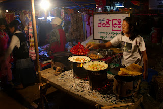 Essenständen und Souvenirläden. Oktoberfest auf burmesisch eben. An der Seite