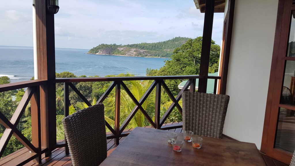 Wir haben für die nächsten Tage eine Selbstversorger-Unterkunft. Eine kleine Einheit von Bungalows, in den Hang gebaut mit spektakulärer Terrasse und einem ebensolchem Blick auf das Meer. Das Anwesen steht unter deutscher Leitung und bietet 100%ige Privatspähre. Nachdem wir ausgepackt haben, nehmen wir uns jeder ein Seybrew, gehen runter zum Pool, und genießen den von hier nicht weniger spektakulären Ausblick über die Landschaft und das Meer.